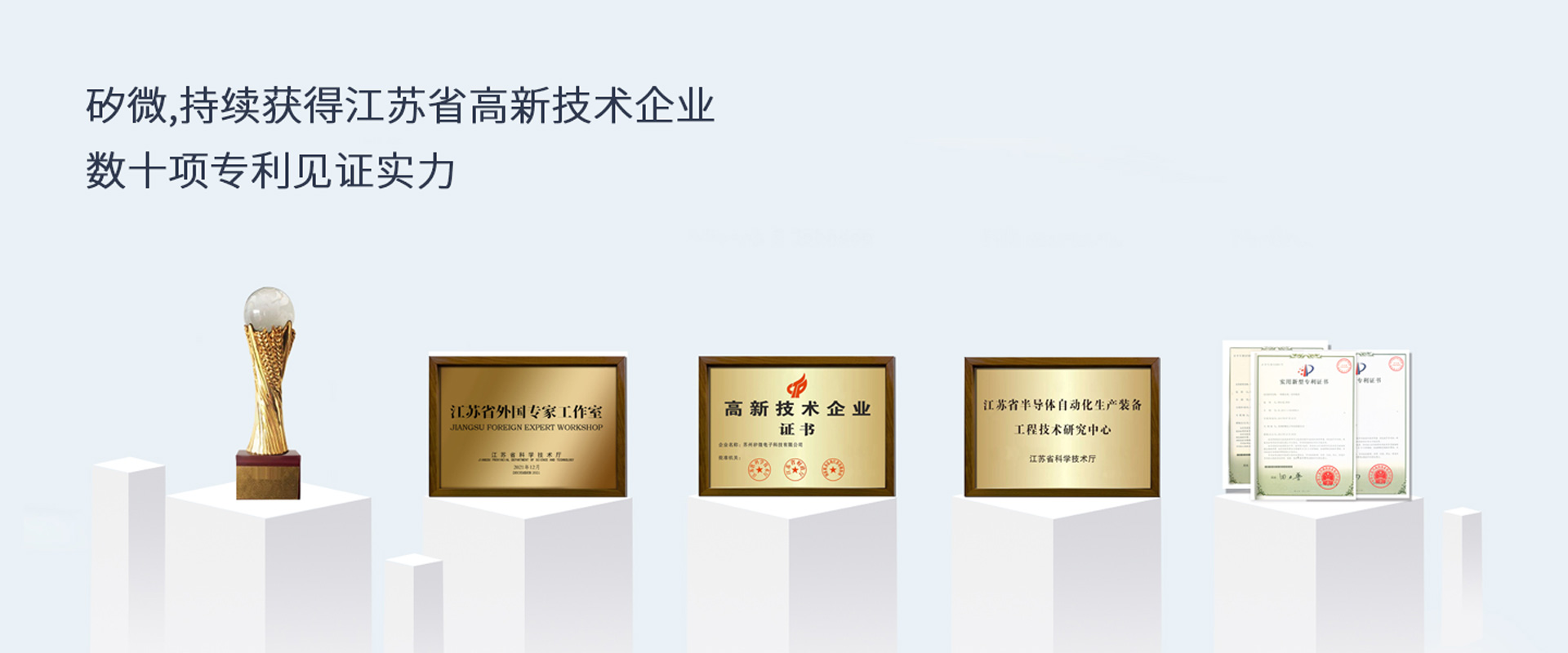 蘇州矽微電子科技有限公司依托強大的研發實力和行業領先的服務水平,蘇州矽微專業提供工廠自動化服務,尤其是半導體后端的各項技術服務,例如FCBGA和FCCSP的全制程所涉及的自動化設備如Boat to Tray, Inline Boat Flip, Auto Flip, M Boat to J Boat, J Boat to M Boat, Top Cover Remover, Inline Boat to Tray and Tray to Tray Inspection 及完整制程的上下料連線、激光打標機、引線框前貼膜機、基板/PCB板自動貼膜機、Lid自動貼合/壓合機(ASA & ALA)、晶圓級的貼膜機、撕膜機、QFN及DFN工藝所用之框架切割側邊腐蝕機、高壓水去飛邊機、自動化學浸泡機、封裝測試各制程的自動上下料機、引線框電鍍線及自動上下料機、FC自動傳輸系統及分選、影像檢測及修整系統、老化測試板上下料機、多功能工裝卡具、互換件等。